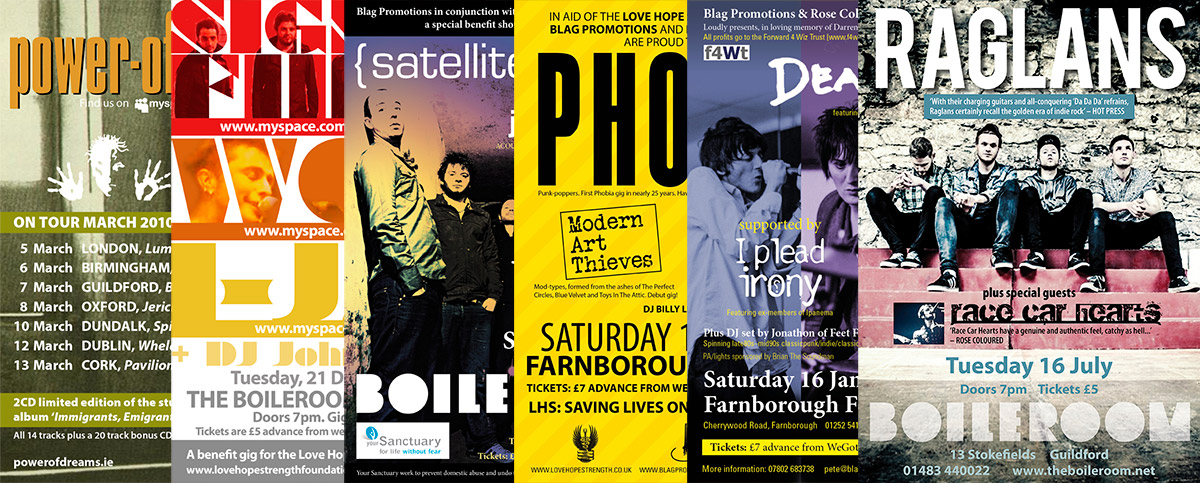 Flyers promoting gigs have been a regular feature of work on behalf of Blag Promotions.